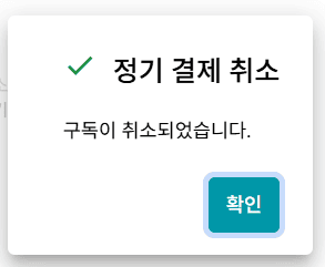 “정기 결제 취소 – 구독이 취소되었습니다.”라는 확인창이 뜨면 모든 과정이 완료된 것입니다.