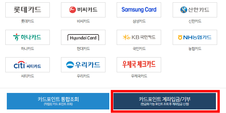내 카드포인트 전체 조회하러 가기 ❯❯카드포인트 통합조회 및 계좌입금 방법