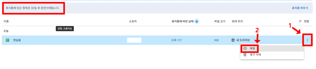 구글 드라이브에서 몇 번의 클릭만으로 복구할 수 있으니, 아래 절차대로 따라 해보세요.